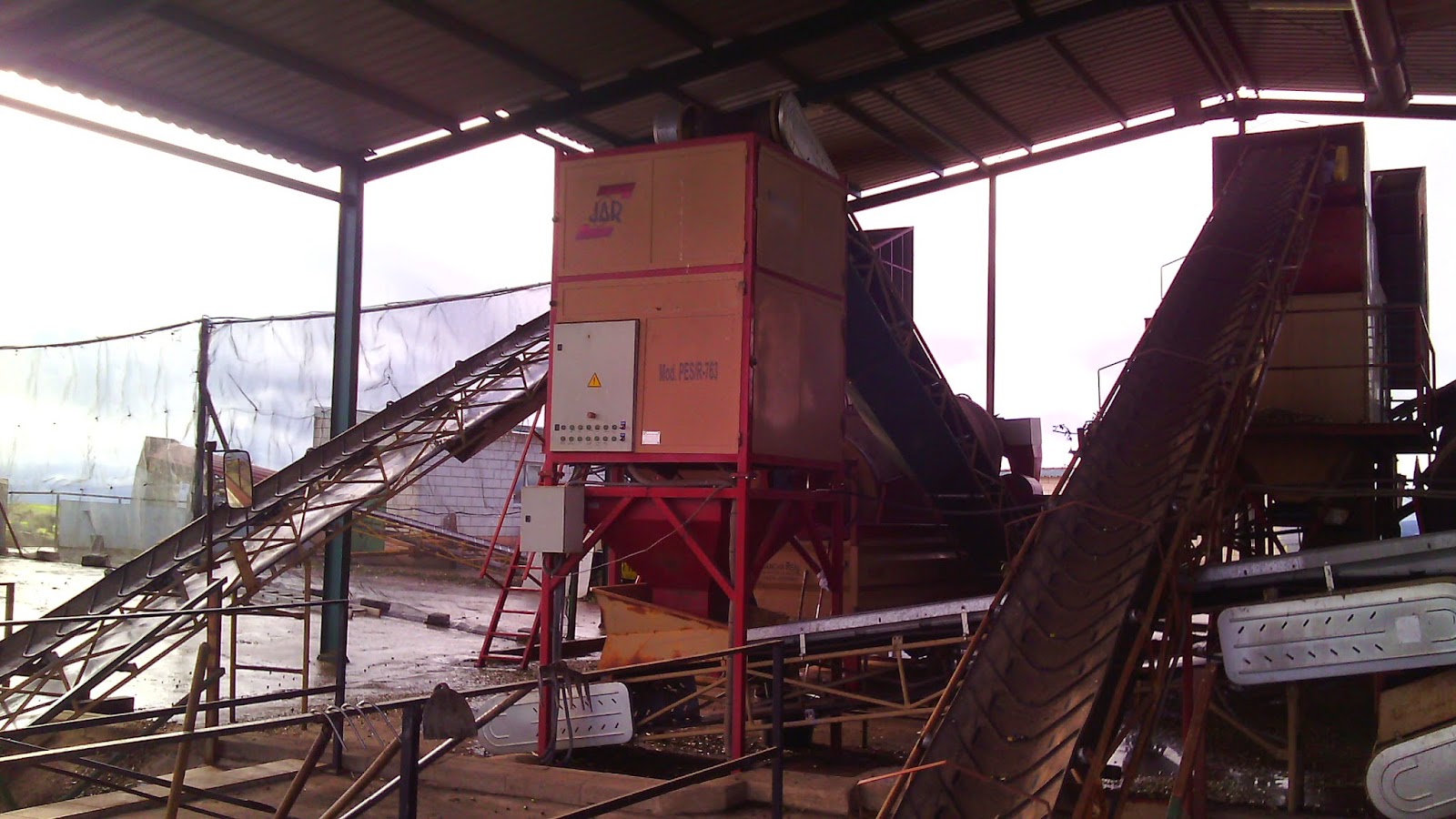 4. Limpieza en Seco: Si el lote de aceituna cumple con todos los requisitos de calidad, se encuentra entonces en condiciones de ser procesada. Para ello se transporta la aceituna por cintas transportadoras pasando por una corriente de aire que elimina los elementos más livianos ella: hojas, tallos, etc.